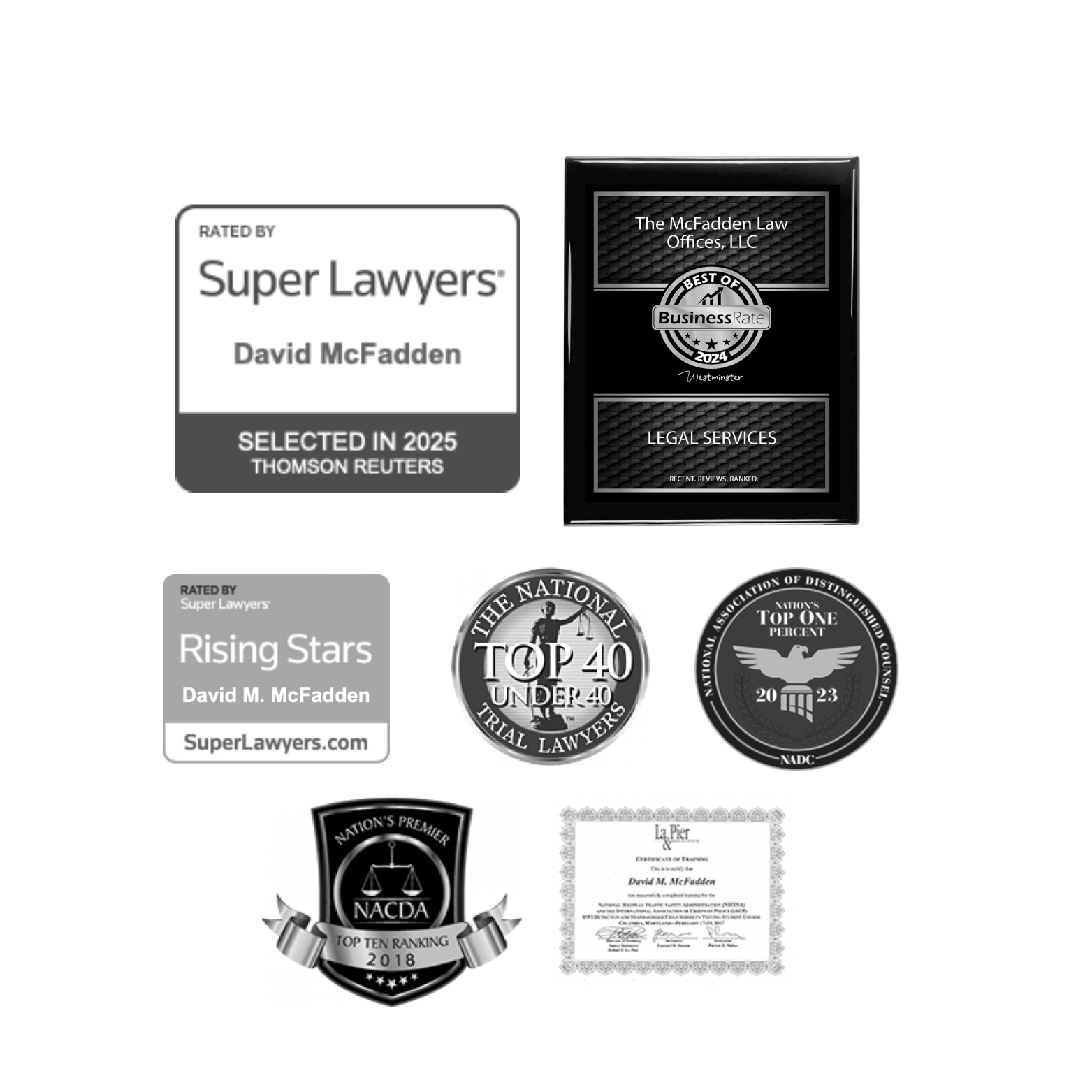Mr. McFadden is admitted in Maryland, Pennsylvania, and Federal Court. He is a member of the Maryland Criminal Defense Attorneys’ Association, the National Association of Criminal Defense Lawyers, the National College of DUI Defense, and the Maryland Association for Justice.